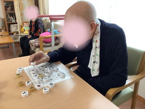 まず、普段の様子ですが、午前中に脳トレや指先を使う運動、紙積み木のバランスゲーム等を行います。